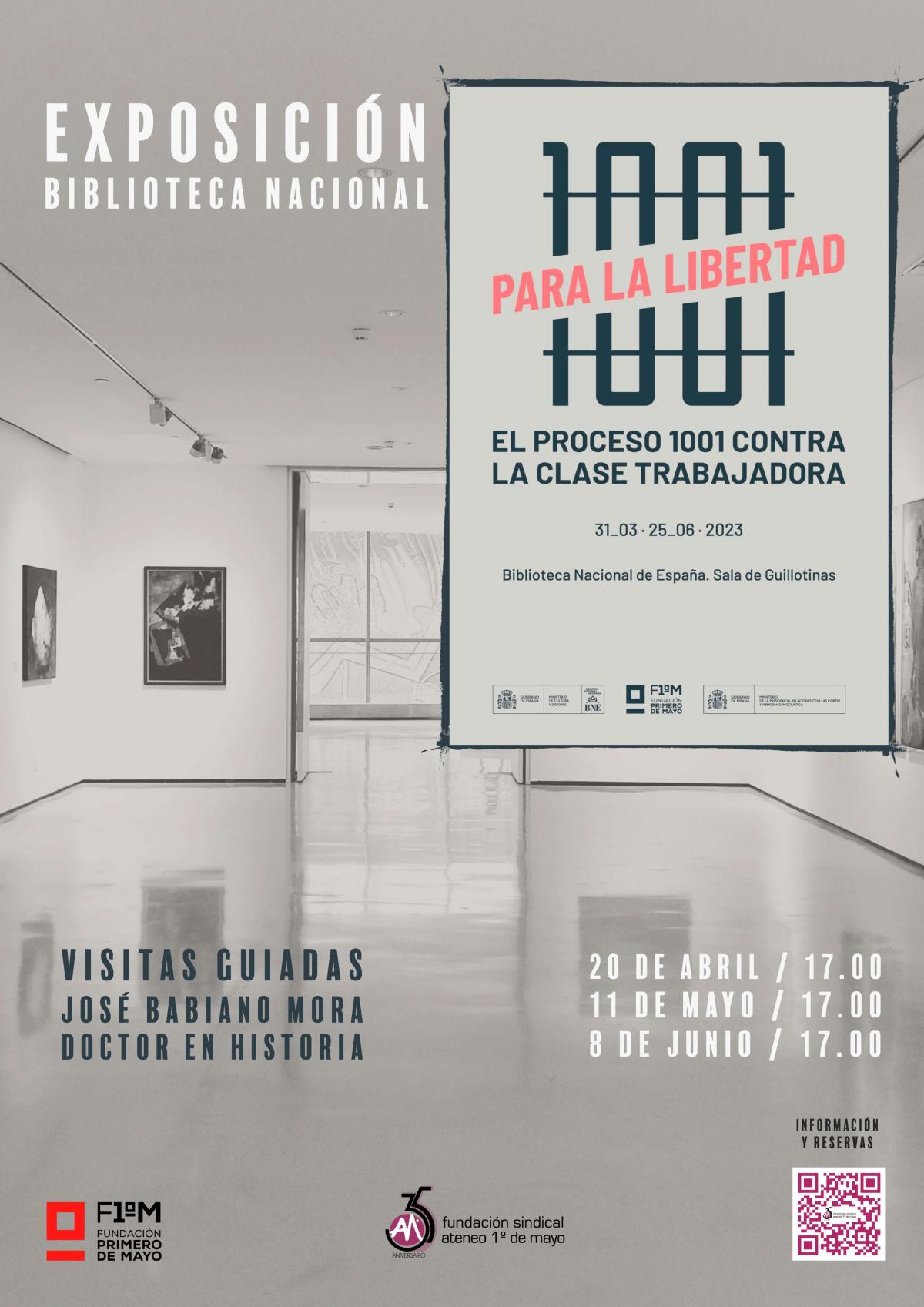 Las visitas guiadas por la exposición 1001 Para la libertad corren a cargo de José Babiano Mora, director del Área de Historia, Archivo y Biblioteca de la Fundación 1° de Mayo. Es doctor en Historia Contemporánea, especialista en Historia del Trabajo en la segunda mitad del siglo XX, tema sobre el que ha publicado varios libros, y decenas de capítulos y artículos. Más recientemente se ha ocupado del estudio de las violaciones de los derechos humanos durante el franquismo.