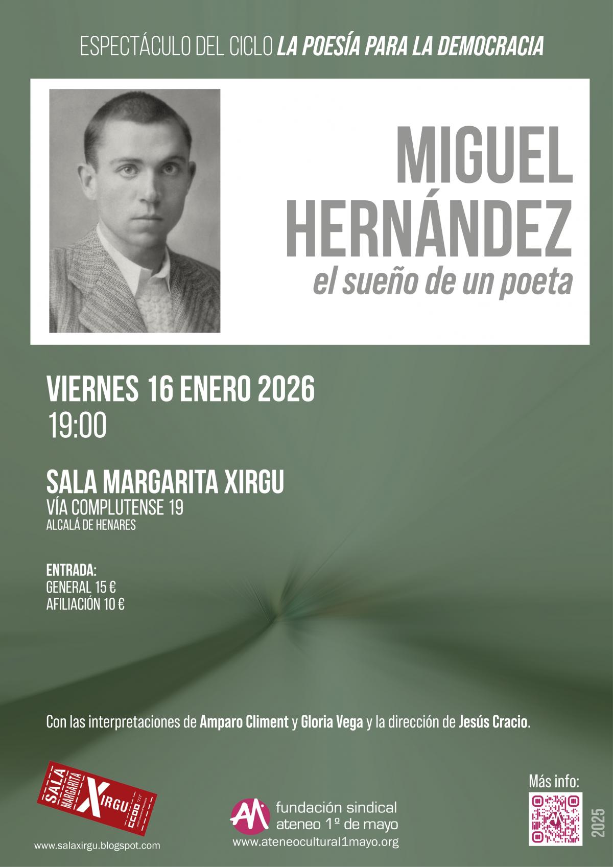 Homenaje a la vida y obra de Miguel Hernández, poeta oriolano, pastor y autodidacta, unió tradición y vanguardia en versos de amor, vida y lucha social. Comprometido con la República, sufrió prisión tras la Guerra Civil. Su poesía, intensa y humana, lo consagra como una de las voces más puras del siglo XX español.